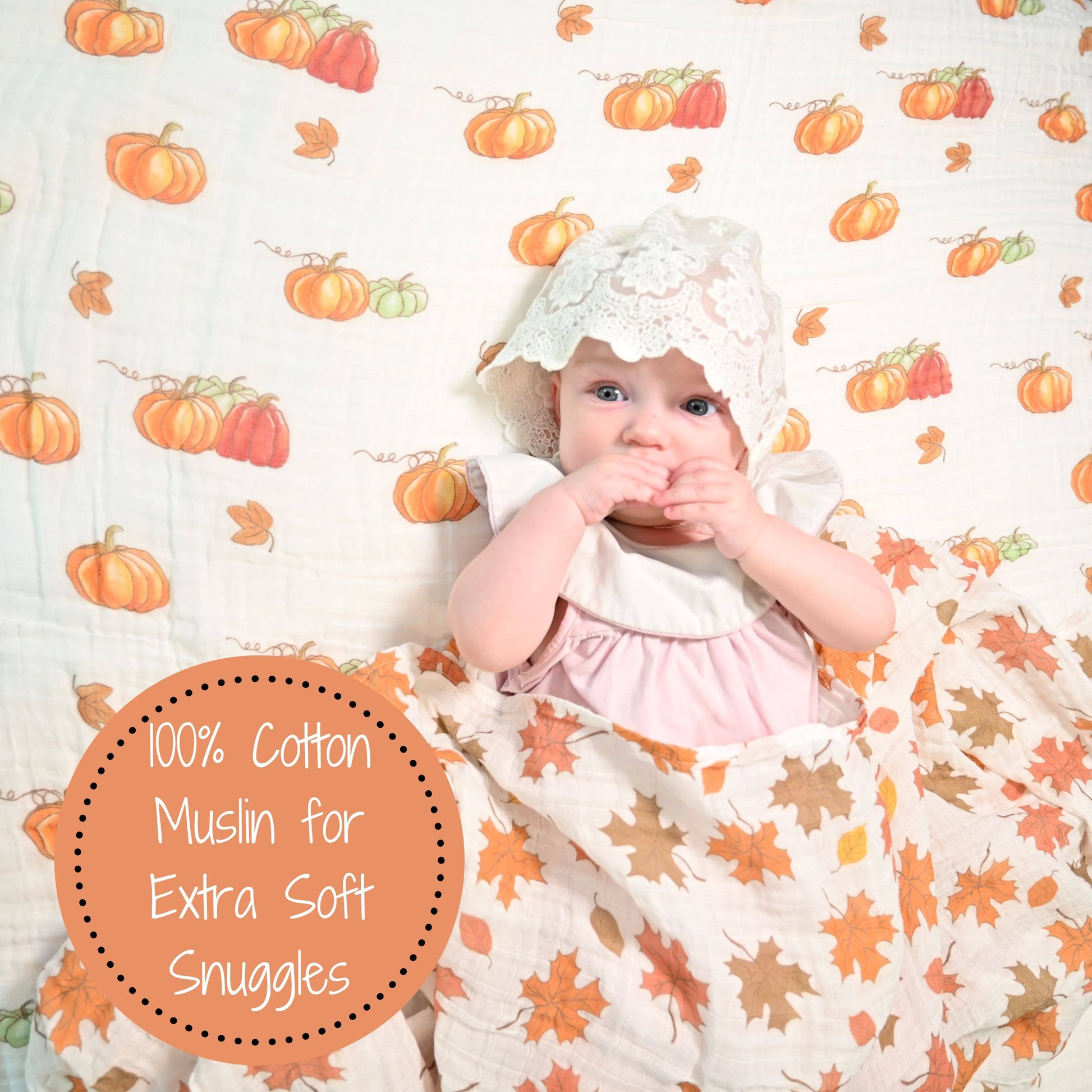 Pumpkin'pie Fall Holiday Theme Baby Muslin Cotton Blanket